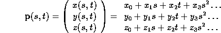 you will see that we have three equations with five unknowns (x, y, z, s and t). We can (in principle; in practice the algebra is very hard) eliminate s and t giving us one equation in x, y and z. So, we can always convert from a parametric polynomial to an implicit polynomial.