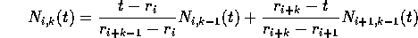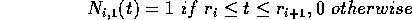 Which is a square-wave with the value 1 when t is between two knots, and 0 when it is outside them. The result of then doing the recursion is effectively to integrate and to smooth those square waves until we end up with weights that look like this: