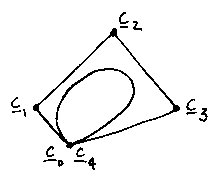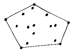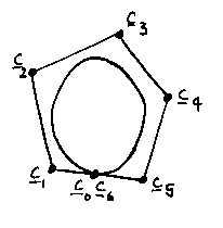 Also, as was demonstrated by the answer to Question 4 on Problem Sheet 2, the curve cannot move outside the convex hull of the control points. The convex hull of a set of points is the convex polygon you'd get if you let an elastic band snap tight around them: