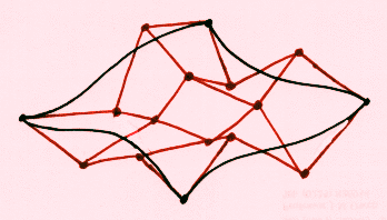 The idea of a control track generalizes to a control grid (in red) and we can build a Bernstein-basis sculptured surface or patch: