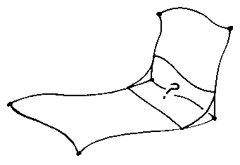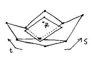 A small curiosity is that the de Casteljau geometrical construction continues to work through all of these extensions and generalizations. If, instead of the ladder-sliding-down-a-wall idea that we had in the two-dimensional case, we allow a quadrilateral to slide about with its corners in the surfaces of 4 other quadrilaterals:
