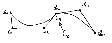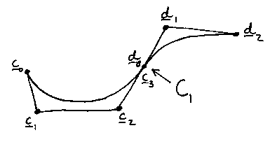 There is another problem. If we are designing a complicated shape, then we will probably get one bit right (by moving the control points, say), then go on to the next bit. But when we move any control point, we change the shape of the whole curve, so we may destroy previous painstaking work. This is because the whole curve is a single polynomial function.