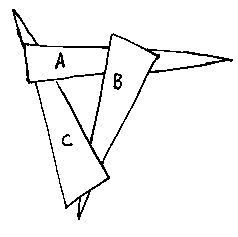 Triangle A is in front of B, which is in front of C, which is in front of A...