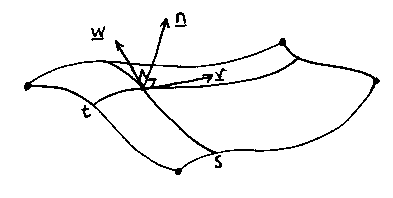 Consider any point, p, in the surface defined by the two parameter values s and t: