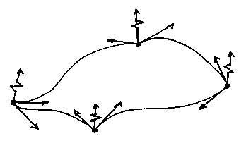 We need the pairs of gradient vectors (the partial derivatives of the surface that we encountered in the cutting-tool offsetting problem) at the corners, too. But this still only gives us 12 pieces of information, and we need 16. So in addition second partial derivatives at the corners are required: