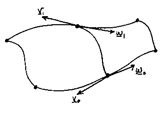 The curves and points may well come from other parts of the geometric model that we want to match (say fuselage data if we're sticking a wing on, or whatever). Alternatively, we can, for example, define four cubic curves by locating the points p wherever we want, and then specifying gradient vectors that we want the surface to have in the s and t directions. (See the end of this chapter for more details of this.)