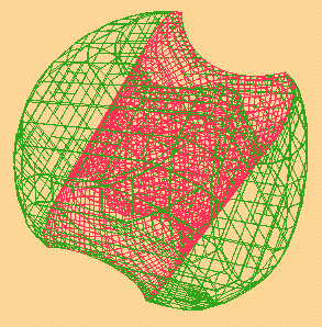 Note that the curved surfaces in the shaded picture appear to be smooth, even though they are made up from flat facets. This is done by interpolating surface normals: