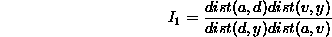 The constructed points define two lines with four colinear points, from which these cross ratio invariants can be defined: